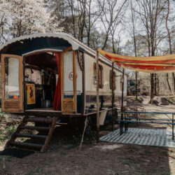 Deze oude woonwagen heeft al een lange geschiedenis en iets magisch. Het is een wagen waar wilde ideeën over vliegtuigen, festivals en theatervoorstellingen het licht hebben gezien. Nu hebben ReCreatievelingen Daan, Lotte, Marie en Lisa hun wagen een beetje vakantie gegeven en delen ze deze plek om heerlijk uit te rusten. Wie weet word ook jij, net als je voorgangers, wakker vol inspiratie!
