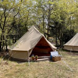 De TinkerBel is een ruime Bell-tent met genoeg plaats voor vier personen. Eenvoudig ingericht maar met alles wat je nodig hebt om te kamperen zonder gesleep en gesleur. Bedden, een keukentje én inventaris en stoelen zijn aanwezig, buiten kun je ook gebruikmaken van de picknickbank. Nog te klein? Huur dan kleine buur BijBel erbij!